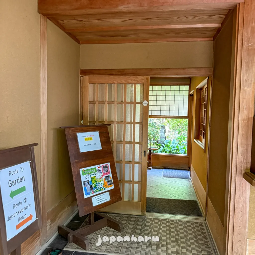왼쪽으로 가면 정원, 오른쪽으로 들어가면 일본식 화실이에요.