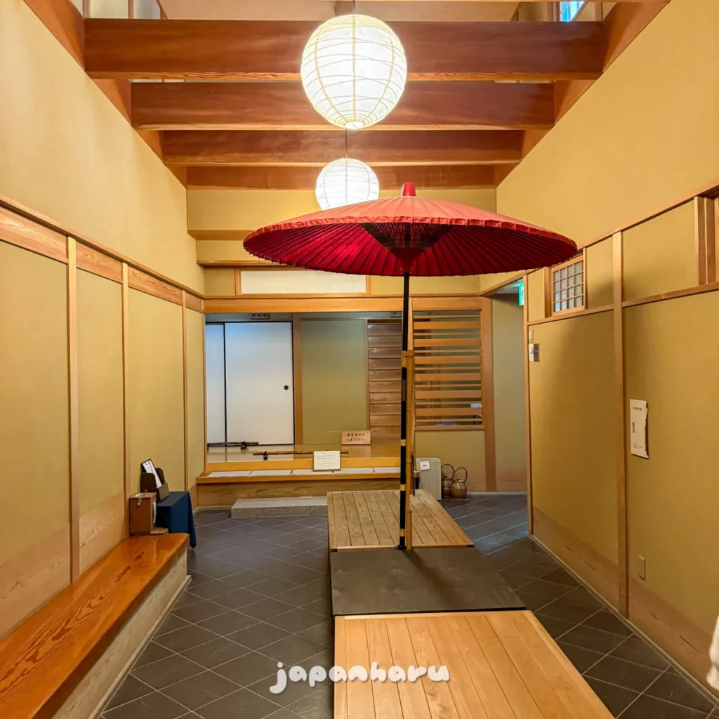 말차를 마시러 들어가서 티켓을 직원 분께 드리니 잠시 기다려달라고 하며 다다미방에서 앉아서 기다렸어요.