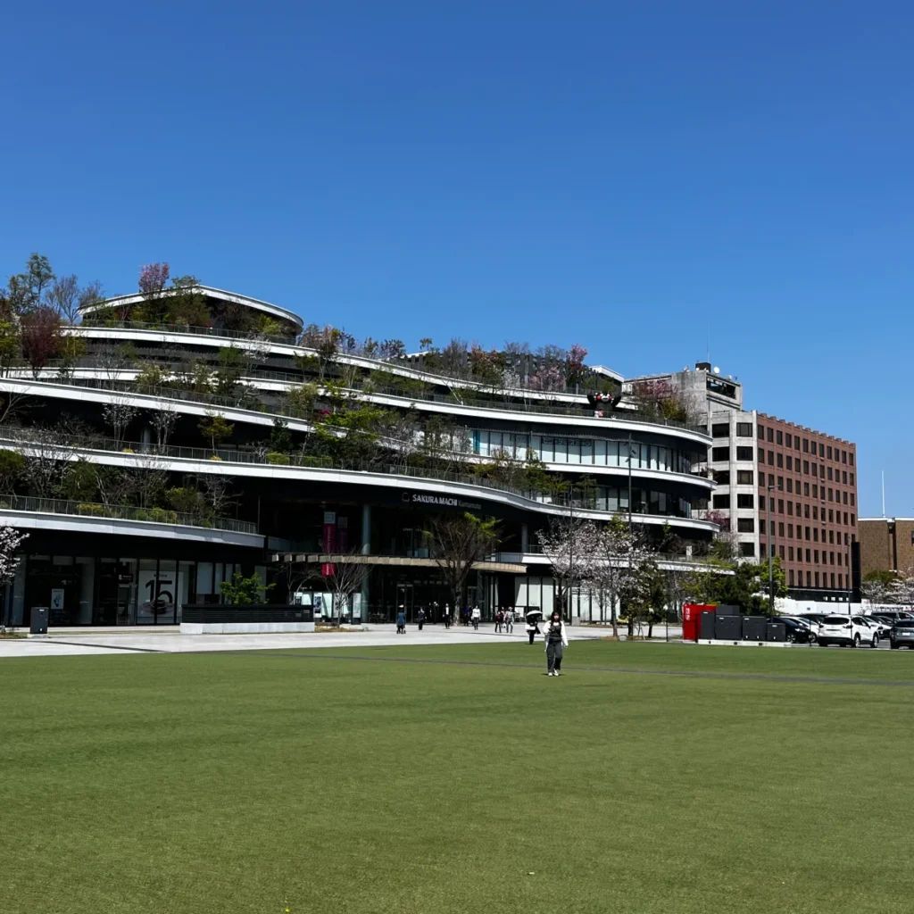 노면전차를 타고 ‘가라시마초’ 정류장에 내리면 바로 앞에 넓은 광장과 함께 사쿠라마치 쇼핑몰이 있어요.