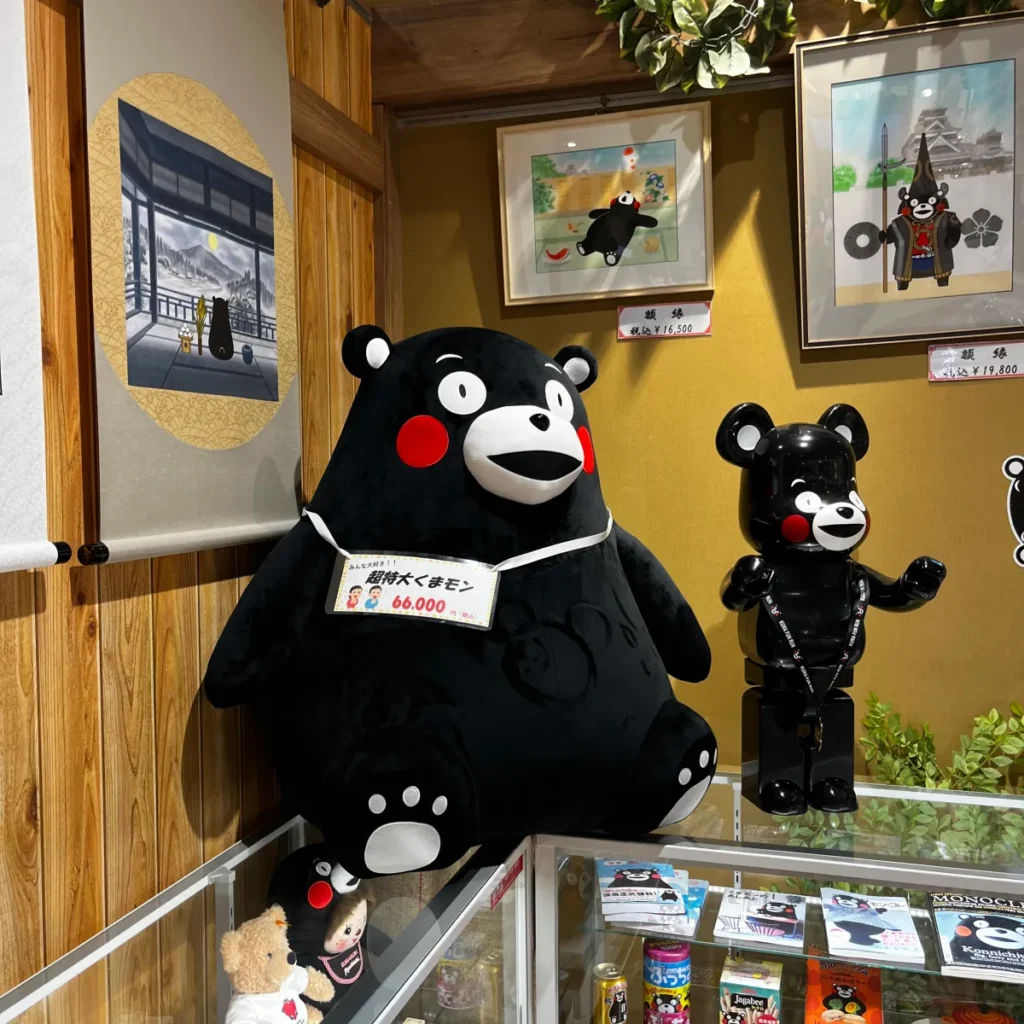 66,000엔짜리 거대 쿠마몬, 양 옆에는 쿠마몬 족자, 쿠마몬 액자도 있어요.
