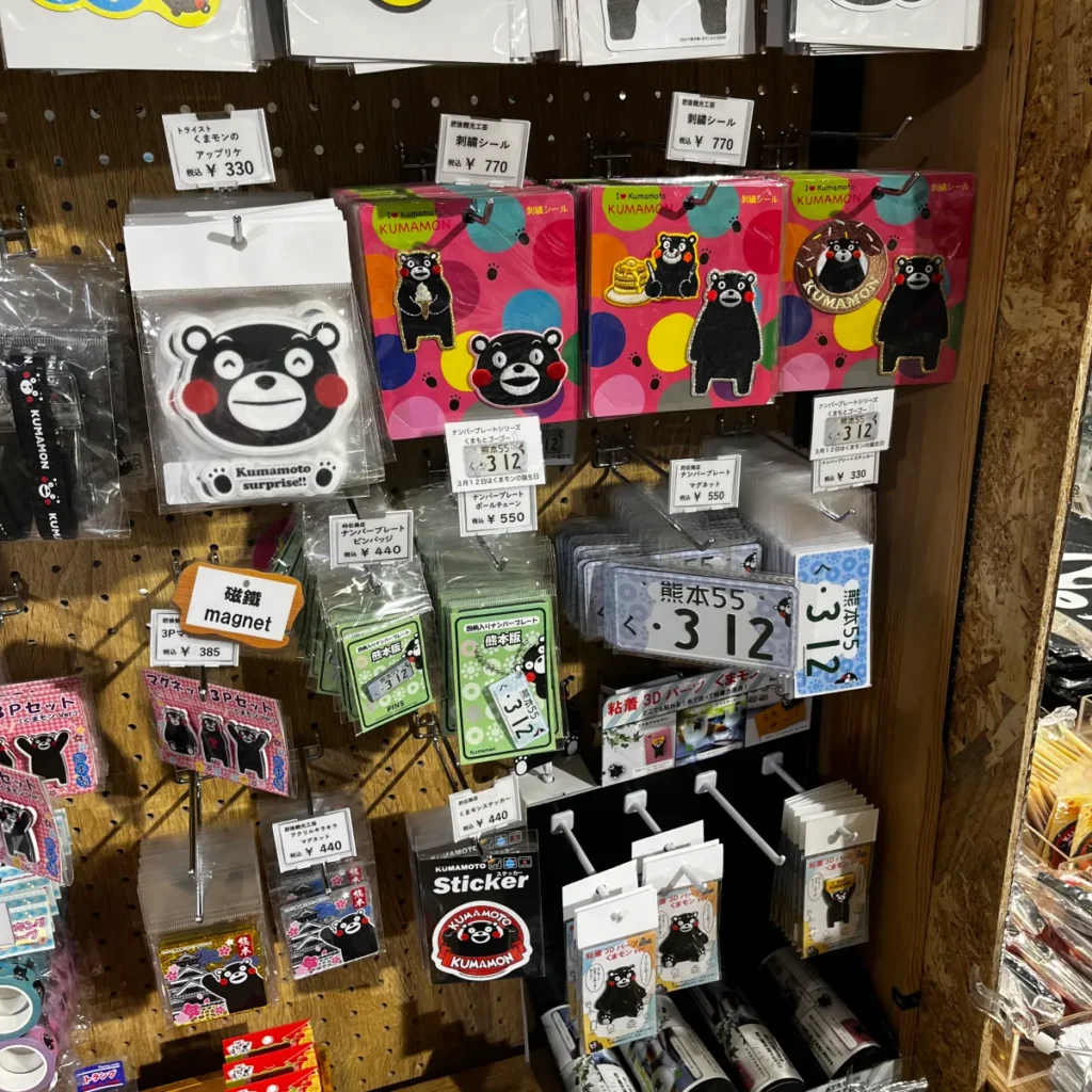 쿠마몬 디자인 번호판 마그넷, 키링 등도 있어요.
