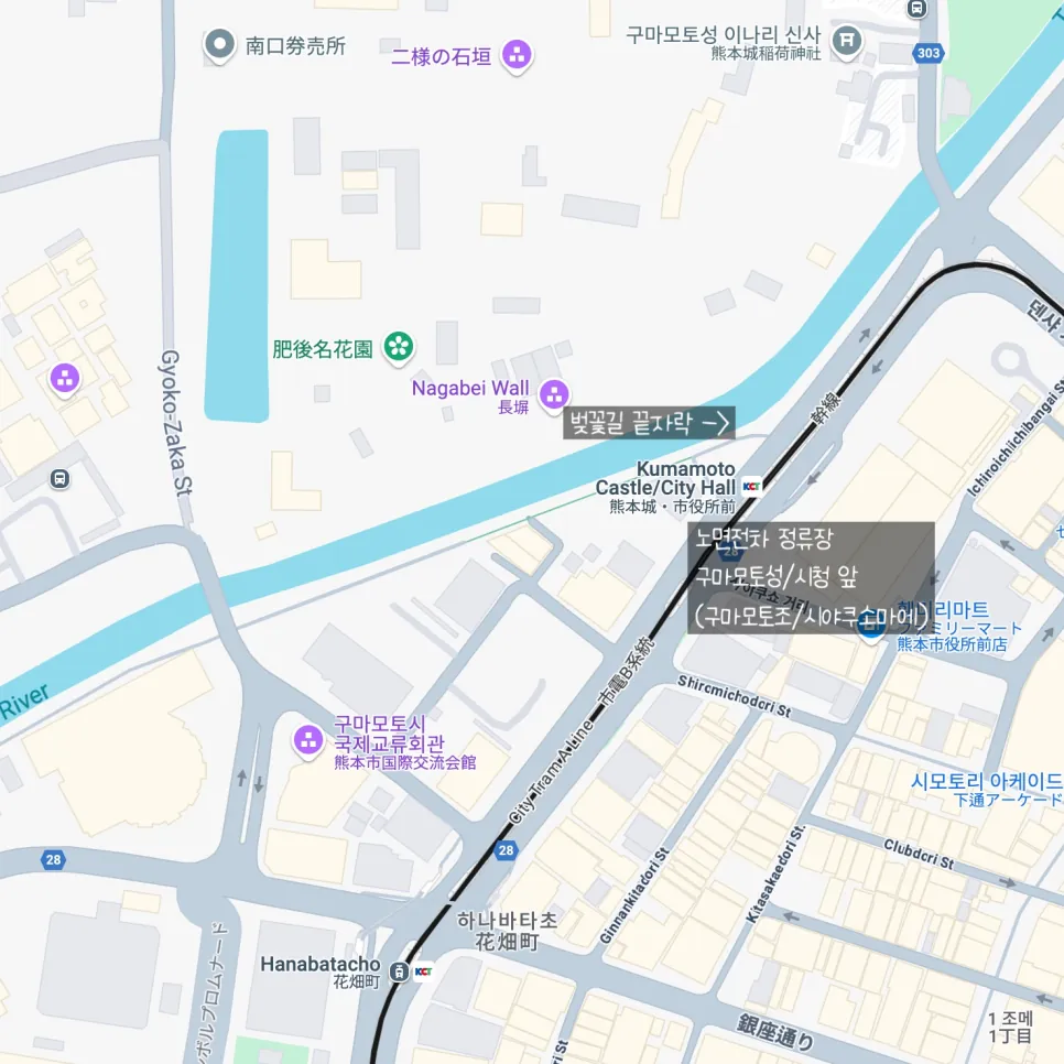 이렇게 걸어오니 벚꽃구경을 마치고 바로 구마모토역으로 가는 노면전차를 타기에도 좋네요 ☺️