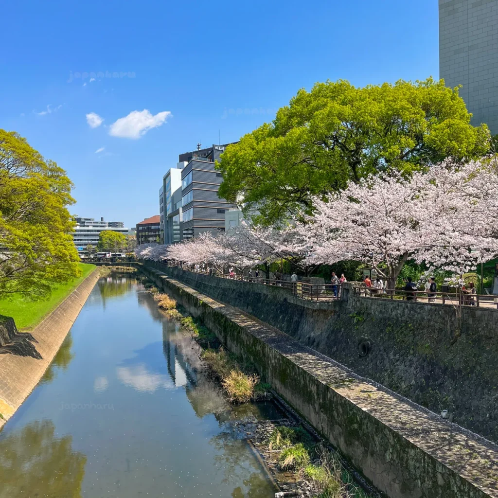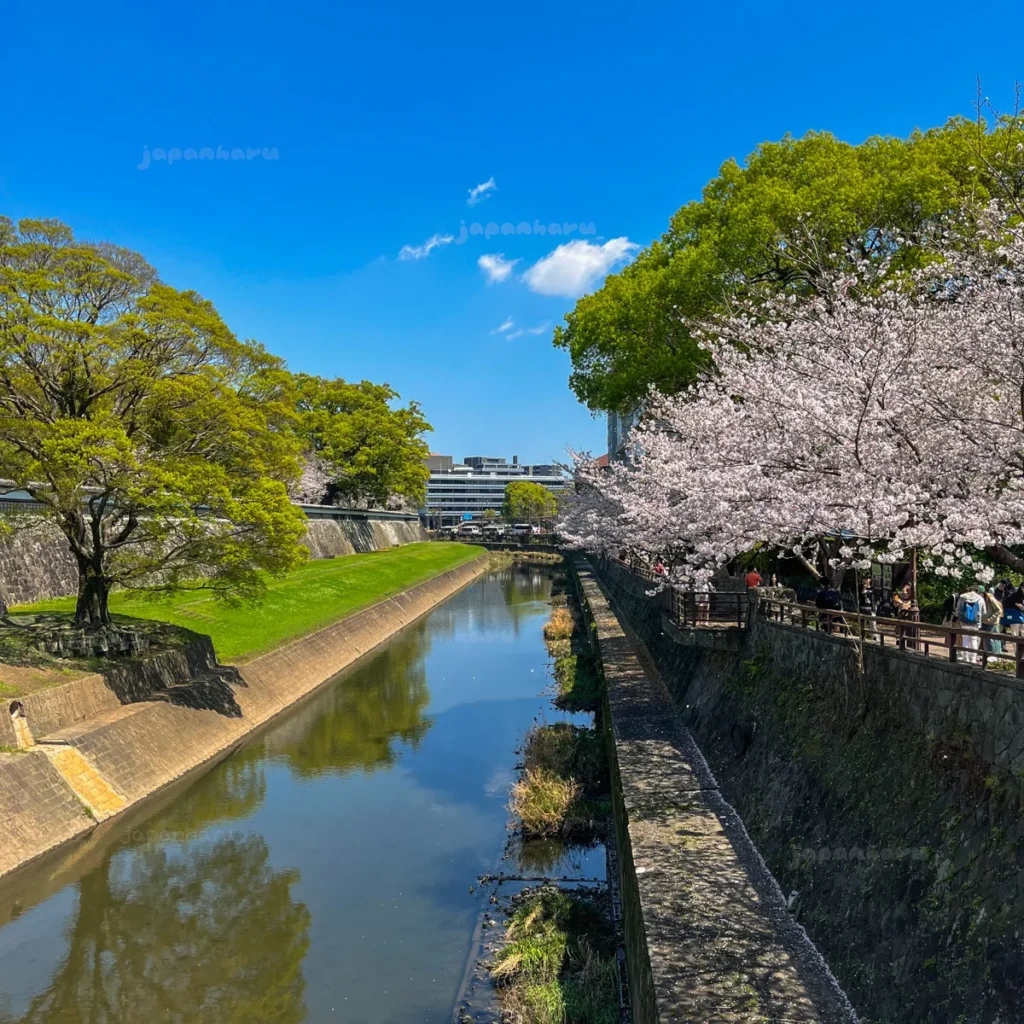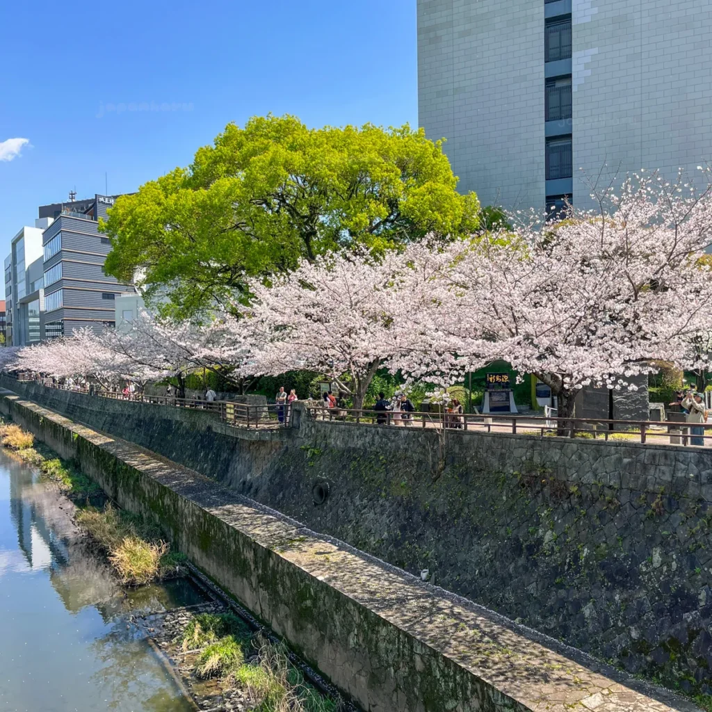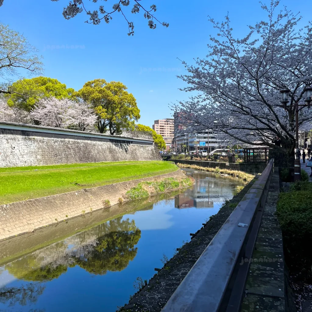 구마모토성 근처 강변 벚꽃길