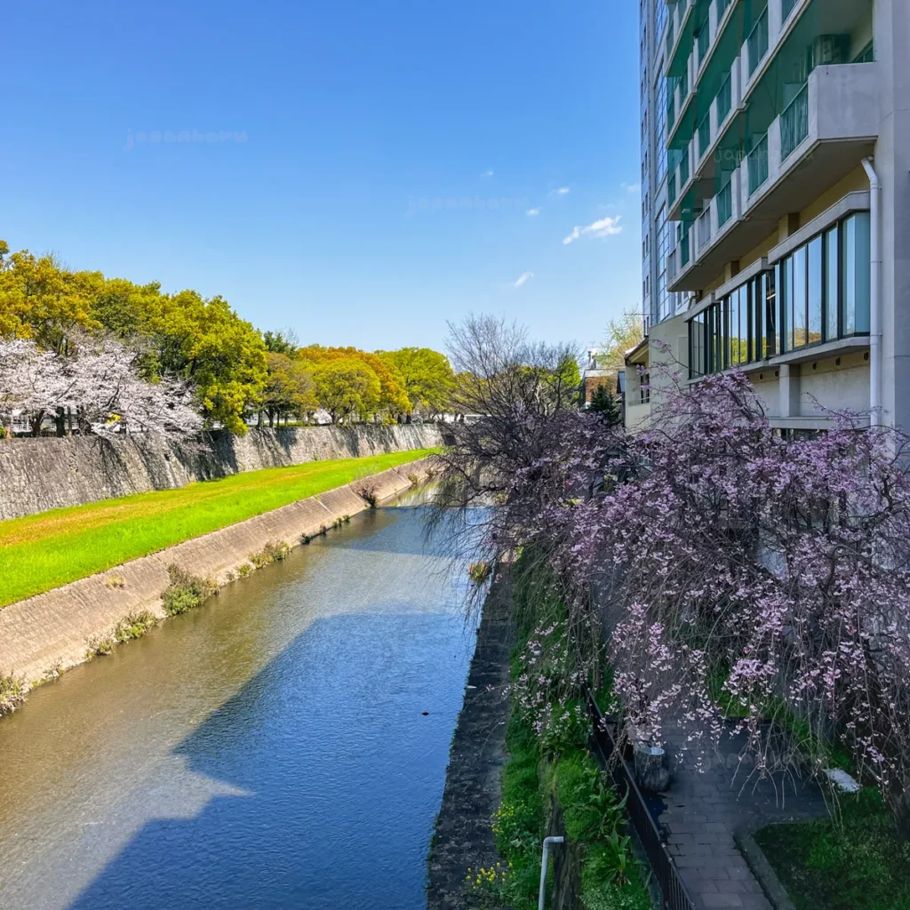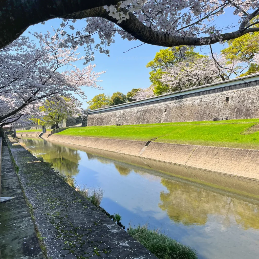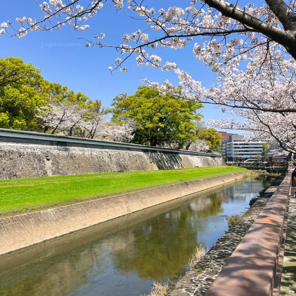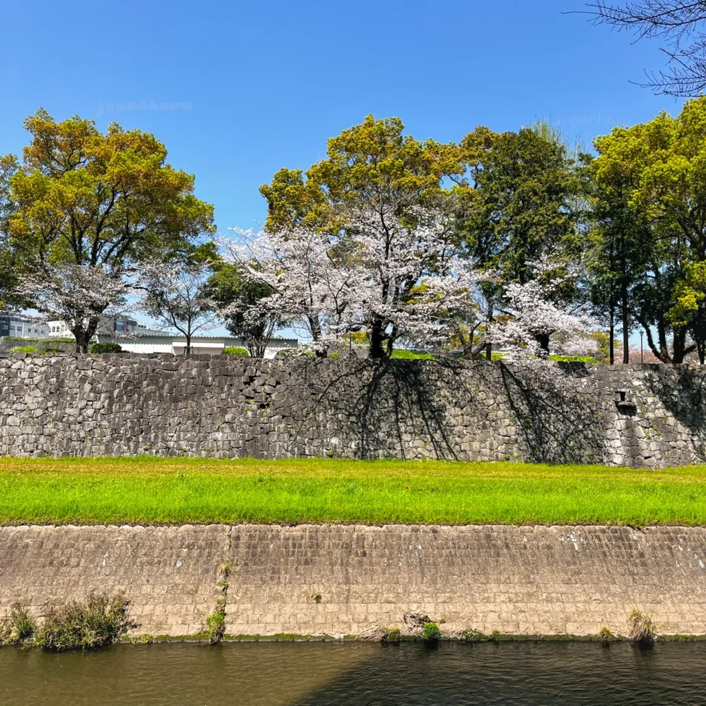 구마모토성 근처 강변 벚꽃길