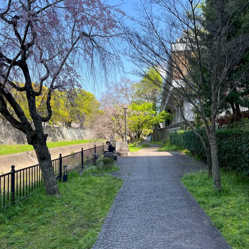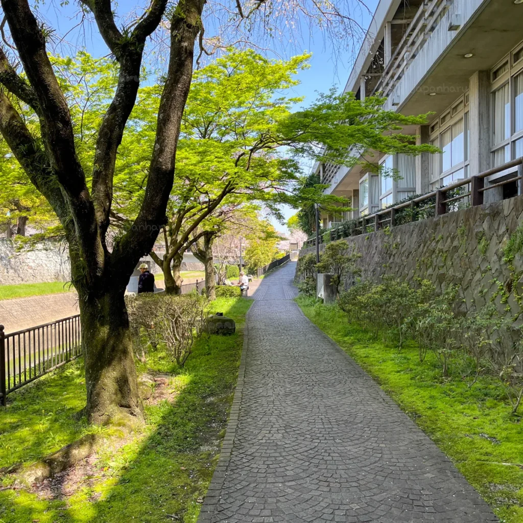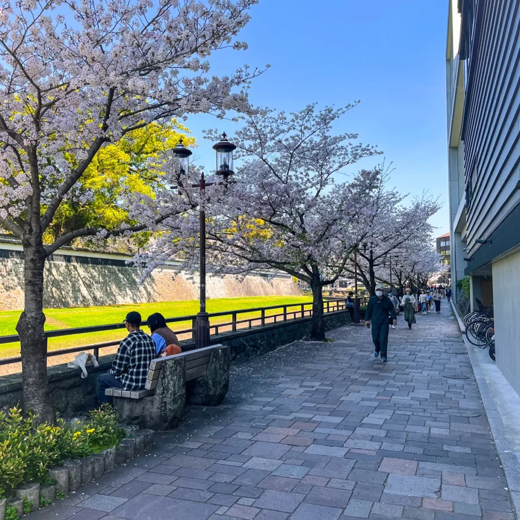 처음에 벚꽃길이라는 생각은 없이 단순하게 산책하려는 생각으로 예전에 구마모토에 왔을 때, 구마모토성으로 가는 길에 보이던 산책길이 좋아보여서 가기로 했어요.