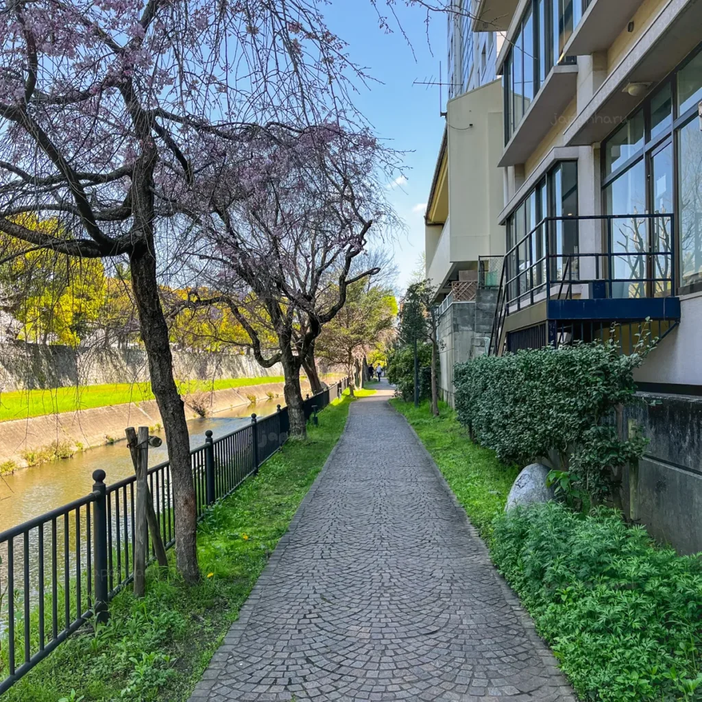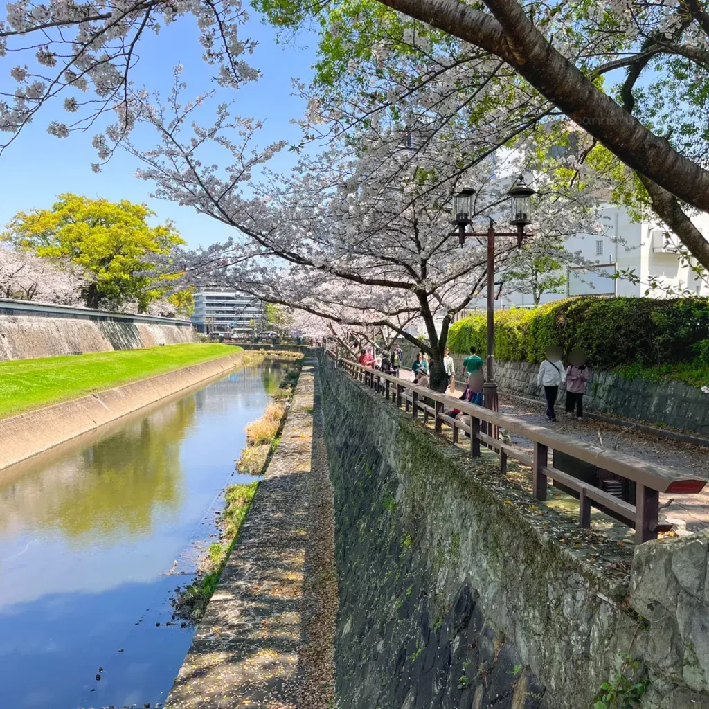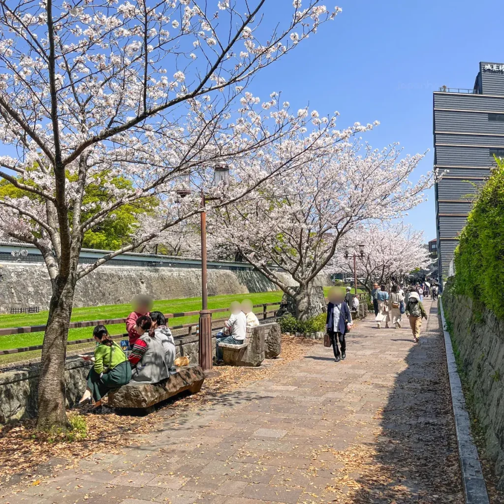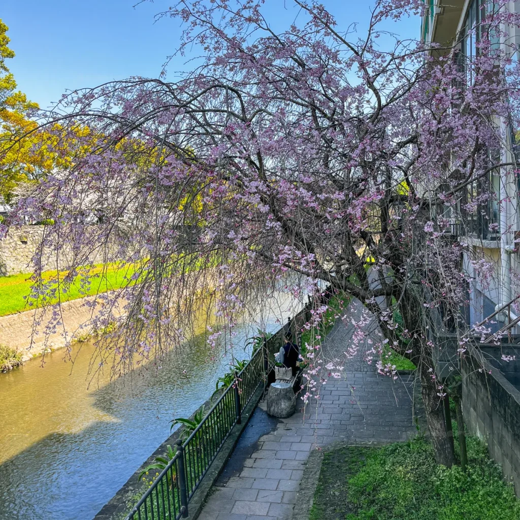 처음에 벚꽃길이라는 생각은 없이 단순하게 산책하려는 생각으로 예전에 구마모토에 왔을 때, 구마모토성으로 가는 길에 보이던 산책길이 좋아보여서 가기로 했어요.