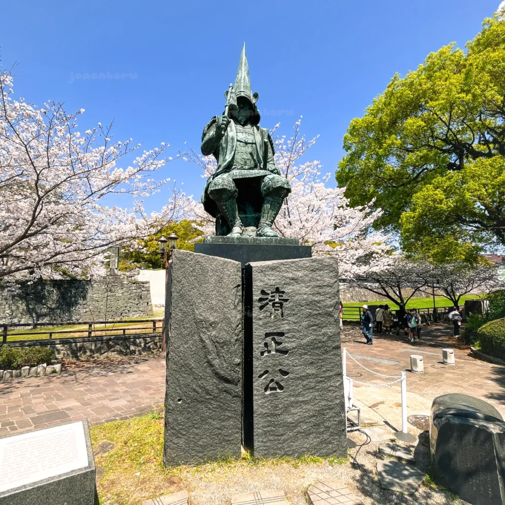 이 동상은 구마모토 지역의 다이묘였던 ‘가토 기요마사’의 동상인데, 사실 이 사람은 임진왜란에 선봉장으로 섰던 사람이라 우리에겐 좋게 보일 수는 없는 사람이에요.